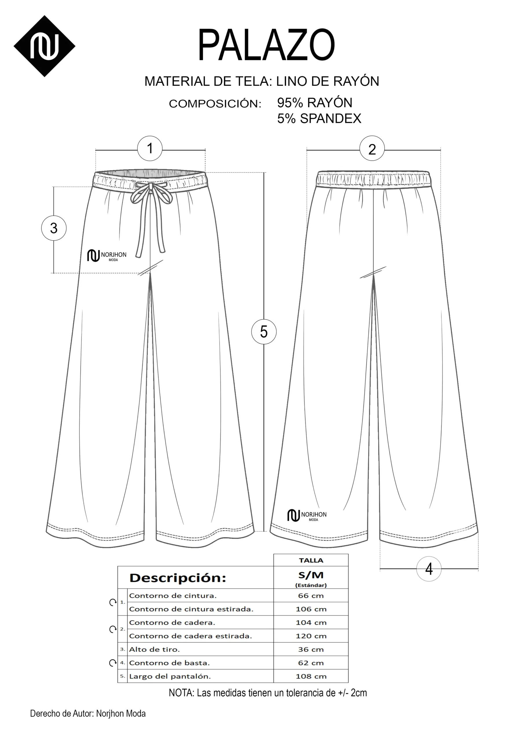 Ideal para ofrecer máxima comodidad y frescura en climas cálidos. Estilo palazo de pierna ancha que cae de forma fluida desde la cintura, creando una silueta relajada y elegante. Para equilibrar el volumen, se recomienda usarlo con tops o blusas más ajustadas, o llevar la prenda superior por dentro para marcar la cintura.